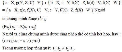 - Để chuyển E thành Es3, chỉ có các vị trí ban đầu của X và Y trong E là được thay thế(không phải các vị trí xuất hiện trong khi áp dụng s3). Kết quả của phép thế này là độc lập với thứ tự áp dụng các phần tử của phép thế.