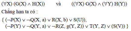 Các mệnh đề trong tập hợp trên đây phải được đặt lại tên biến sao cho không có sự trùng tên. Muốn vậy, ta sử dụng các luật tương đương tổng quát :