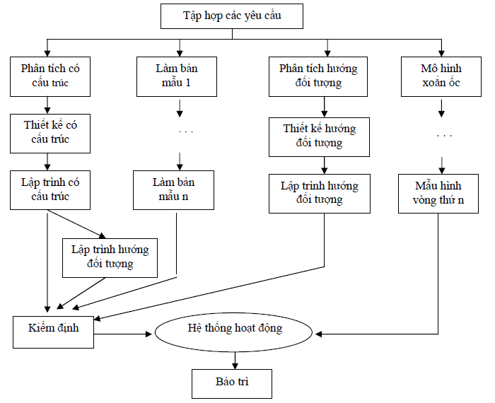 Tuy nhiên, trải qua thời gian, một số phương pháp đã tỏ ra có sức sống dẻo dai, đang được áp dụng rộng rãi trong thực tế. Trong số này phải kể trước hết những phương pháp có tên chung là các phương pháp có cầu trúc [7, 9, 19]. Những phương pháp này thống nhất trong cùng một cách tiếp cận, đó là hướng thủ tục và cùng một hướng tư duy (có cấu trúc và trên xuống), nhưng mỗi phương pháp lại chỉ đề cập đến một phương diện của quá trình phát triển phần mềm. Do vậy, người ta thường sử dụng một số phương pháp liên hoàn, bổ sung cho nhau trong cùng một đề án phát triển phần mềm phức tạp. Ngày nay nó vẫn chưa lạc hậu, vẫn còn phát huy tác dụng tốt cho những hệ thống có cấu trúc với những dữ liệu tương đối thuần nhất. Nhưng do sự phong phú về phương pháp luận và sự đa dạng về sự biểu diễn các khái niệm (các ký hiệu rất khác nhau, không thống nhất) dẫn tới khó có thể đưa ra được một qui trình thống nhất cho quá trình phát triển phần mềm. Mặt khác, nhiều vấn đề phức tạp mới xuất hiện, không chỉ yêu cầu tính toán lớn, xử lý phân tán, thường xuyên thay đổi các yêu cầu mà còn đòi hỏi phải quản lý với nhiều loại dữ liệu khác nhau, dữ liệu đa phương tiện, dữ liệu âm thanh, hình ảnh, v.v.