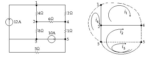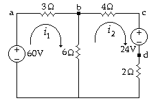 dòng điện i1 và i2 trong các nhánh nối tạo thành tập hợp các dòng điện độc lập. các dòng điện khác trong mạch có thể tính theo i1 và i2.