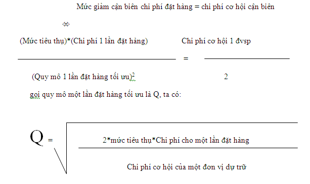 Do đó , quy mô đặt hàng tối ưu sẽ là điểm mà tại đó hai tác động trên loại trừ lẫn nhau một cách hoàn toàn . Có nghĩa là :