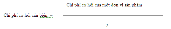 Chi phí cơ hội bao gồm : chi phí của vốn đầu tư bỏ vào dự trữ và các chi phí khác. Khi đó, chi phí cơ hội cận biên là chi phí cơ hội mà doanh nghiệp bỏ ra để dự trữ thêm một đơn vị sản phẩm . Khi tăng thêm một đơn vị sản phẩm thì mức dự trữ bình quân tăng lên là 0,5 đơn vị sản phẩm . Như vậy , chi phí cơ hội cận biên là :