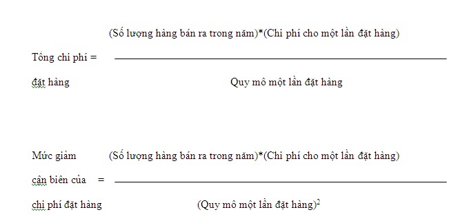 Chi phí đặt hàng: là khoản chi phí mà doanh nghiệp phải bó ra để thực hiện được một lần đặt hàng.Ta thấy, nếu quy mô mỗi lần đặt hàng tăng lên sẽ làm tổng chi phí đặt hàng của doanh nghiệp giảm xuống . Mức giảm đi của tổng chi phí đặt hàng phụ thuộc vào quy mô đặt hàng bình quân