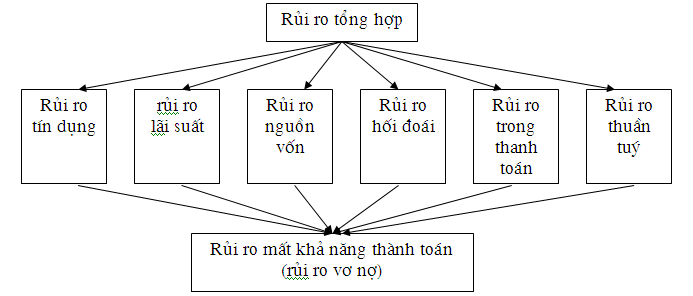 Đây là loại rủi ro riêng có và liên quan dến sự sống còn của một ngân hàng. Rủi ro nay thường là hậu của một hoặc nhiều rủi ro nói trên. Ngân hàng có thể mất khả năng thanh toán, thậm chí thâm hụt cả vốn tự có ít ỏi dẫn đến vỡ nỡ phá sản ngân hàng. Sự phá sản của một ngân hàng có nguy cơ kéo theo sự phá sản hàng loạt ngân hàng như hiện tượng ở Mỹ trong nhưng năm 30, những năm 80,... hoặc sự đổ vỡ hàng loạt quỹ tín dụng ở nước ta nhẵng năm cuối thập kỉ 80 vừa qua.