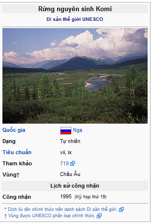 Khu vực này tương ứng với Khu bảo tồn Pechora-Ilych và Vườn quốc gia Yugyd-Va của Nga.