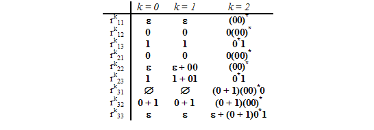 r213 = r112 (r122 )* r123 + r113 = 0(00 + ε)*(1 + 01) + 1