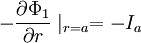Dòng từ điện cực chỉ vào không gian giữa. Thực tế, điều kiện biên trong không gian giữa là tổng số dòng đi vào không gian tại r = a là tổng dòng được cung cấp Ia. Nhìn vào biểu thức 23.1 và định nghĩa về Vm sau tại r = a ta có