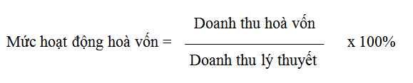 Sau khi có điểm hoà vốn, có thể xác định thêm chỉ tiêu mức hoạt động hoà vốn. Tính: