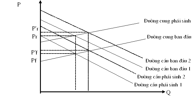 Đường cong cầu phái sinh hoàn toàn co dãn với giá, bằng hiệu số không đổi giữa đường cầu ban đầu và đường cầu phái sinh. Giá này phản ánh giá các dịch vụ và do đó bằng chênh lệch giá giữa giá lẻ và giá ở nông trại.