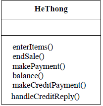 Tuy nhiên, điều này không có nghĩa là lớp có tên HeThong phải thực hiện tất cả những nhiệm vụ đó. Trong giai đoạn thiết kế, những thao tác của hệ thống có thể được gán cho lớp điều khiển.