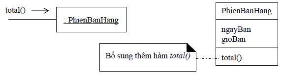 Chúng ta bắt đầu vẽ biểu đồ cộng tác liên quan đến việc gán trách nhiệm tính tiền bán hàng (total()) cho lớp PhienBanHang.