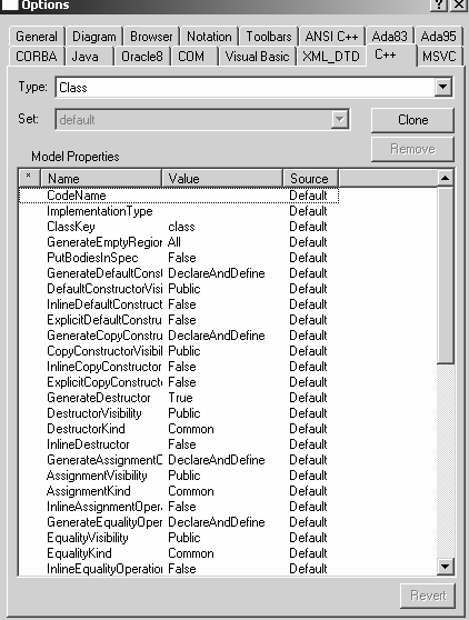 Để quan sát đặc tính của mô hình có thể chọn Tools > Options (hoặc nhấn đúp vào Model Properties từ Browser), sau đó chọn ngôn ngữ lập trình, ví dụ chọn C++ như hình 1.
