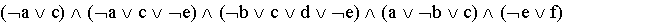 Ví dụ : Nếu ta có 6 biến mệnh đề a, b, c, d, e và f, thì biểu thức sau đây là một CNF: