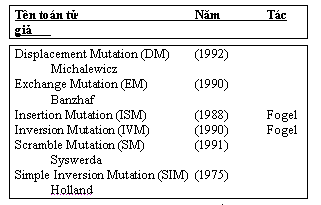 Bảng 9.6 - Danh sách các toán tử đột biến cho bài toán TSP.