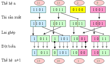 - Phương pháp tạo thành viên mới từ thành viên hiện có, còn gọi là toán tử di truyền (genetic operators): Các toán tử di truyền phổ biến là