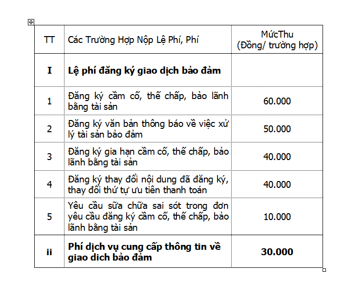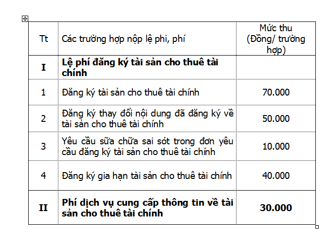 Biểu mức thu lệ phí đăng ký, phí