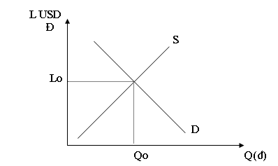 Các tỷ giá hối đoái được xác định chủ yếu thông qua các lực lượng thị trường của cung và cầu. bất kỳ cái gì làm tăng cầu về một đồng tiền hoặc làm giảm cung của nó đều có xu hướng làm cho tỷ giá hối đoái tăng lên. bất kỳ cái gì làm giảm cầu về một đồng tiền hoặc làm tăng cung đồng tiền ấy trên các thị trường ngoại hối sẽ hướng tới làm cho giá trị trao đổi của nó giảm xuống ở hình vẽ dưới, ta thấy được tỷ gía hối đoái cân bằng lo của đồng việt nam và đồng usd mỹ thông qua giao điểm s và d.