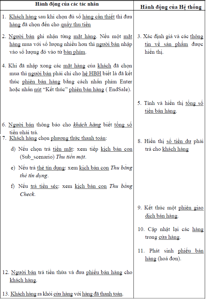 Xét kịch bản mô tả ca sử dụng “Bán hàng”